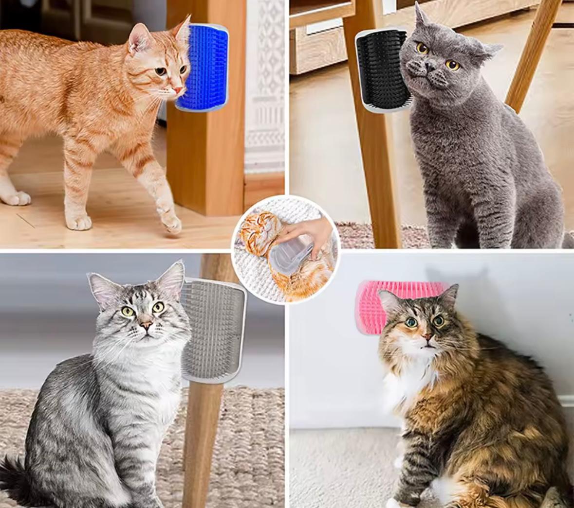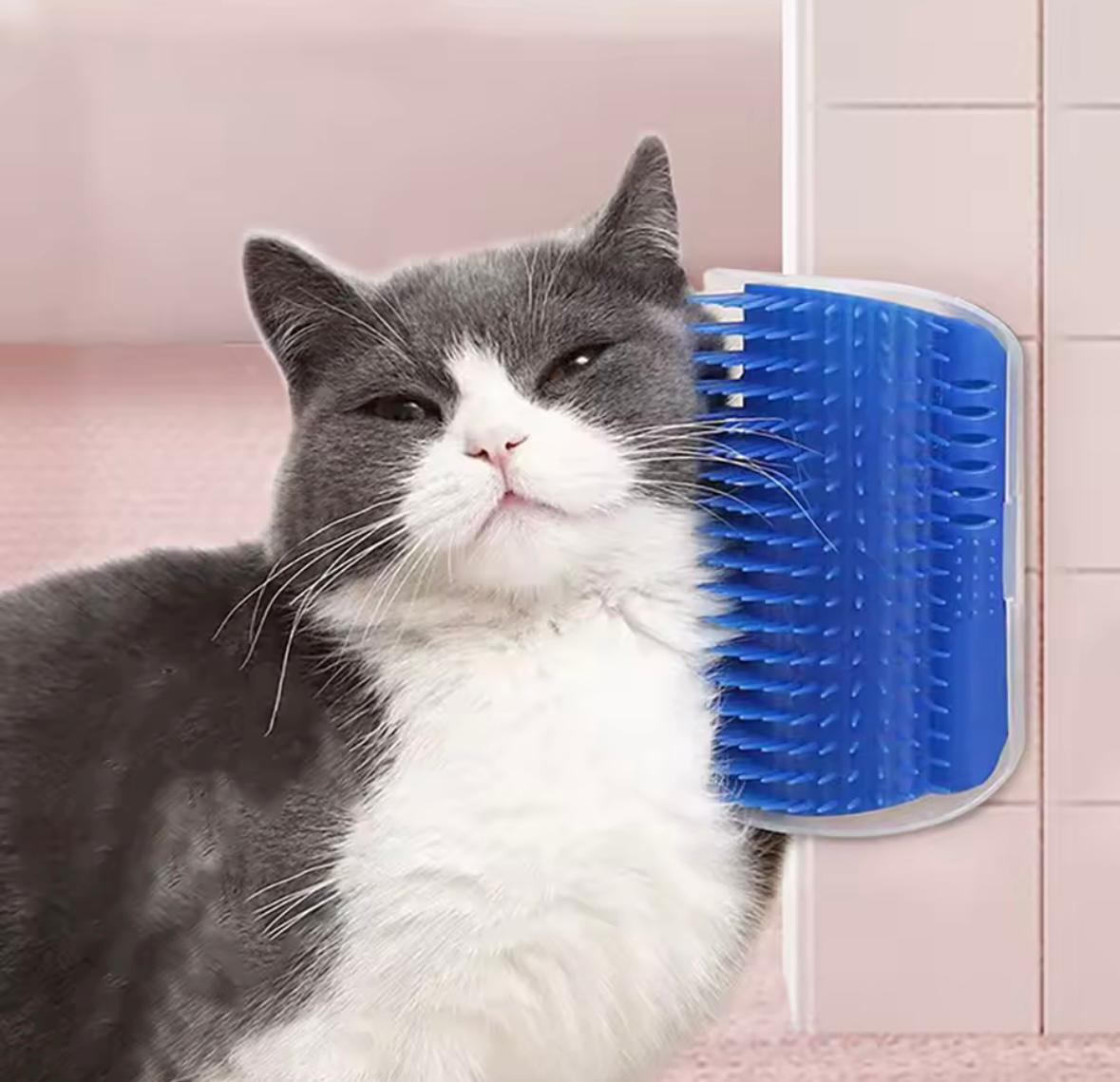 Spazzola angolare da parete con setole morbide, perfetta per il tuo gatto. Si fissa facilmente all'angolo di una parete e permette al tuo amico felino di strофinarsi da solo per grattarsi e spazzolarsi quando vuole.